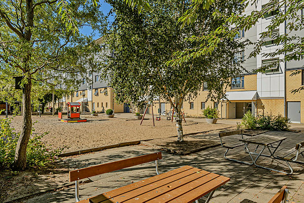Andre tilbud i Grønneparken: Leje af fælleshus, Leje af gæstelejlighed, mulighed for kolonihave, cykelværksted, bytte-tøj-biks. Så her behøver man ikke blive ensom.